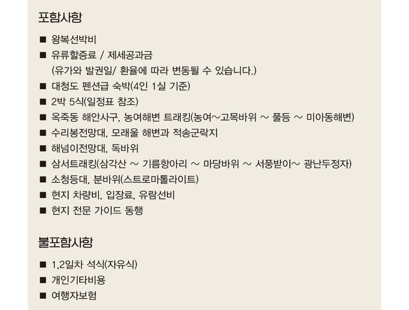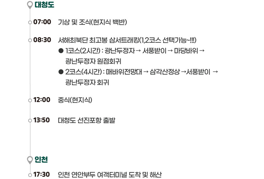 * 서해5도 할인(평일출발)은 1개월전 예산확인 후 예약가능합니다.