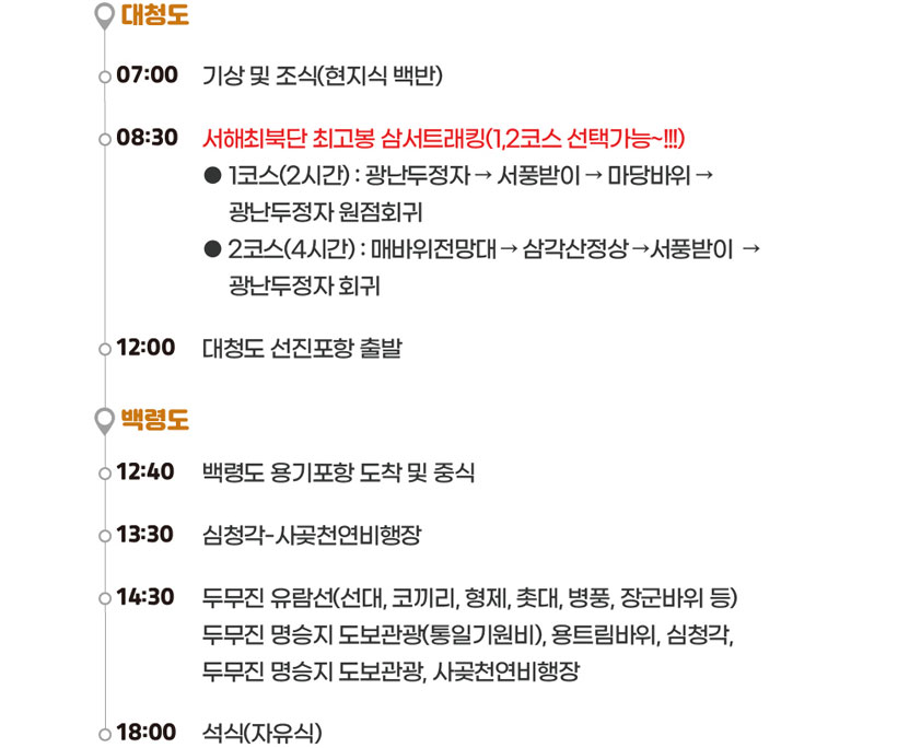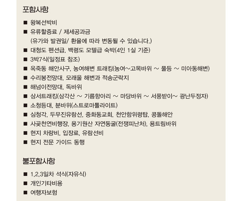 * 서해5도 할인(평일출발)은 1개월전 예산확인 후 예약가능합니다.